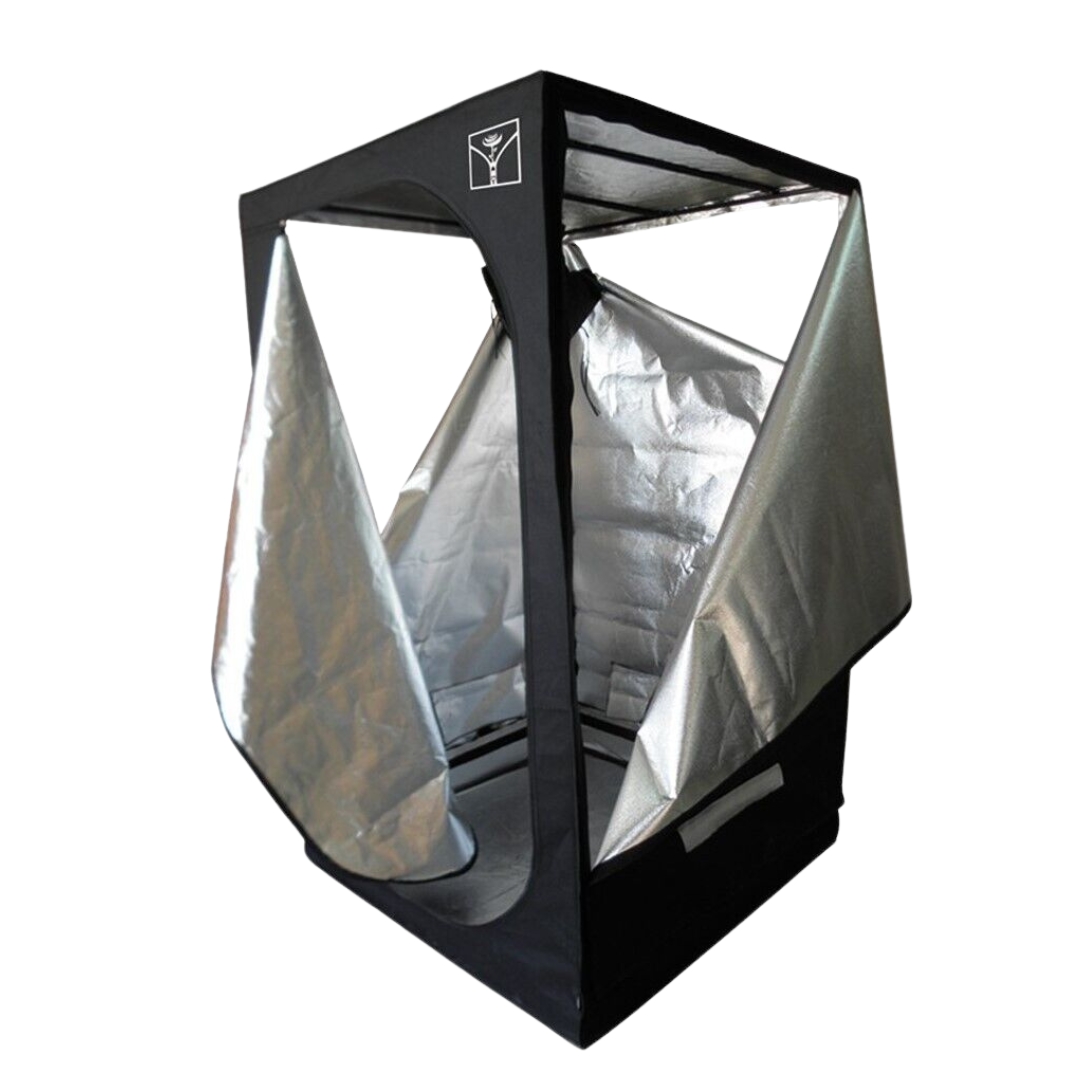 Su estructura es metálica y con gran resistencia, siendo este fabricado con lona de alta calidad con un interior brillante de metal rugoso, tiene bocas para intraccion y extraccion, su suelo es reflectante, puede añadir bandejas para evitar derrames.