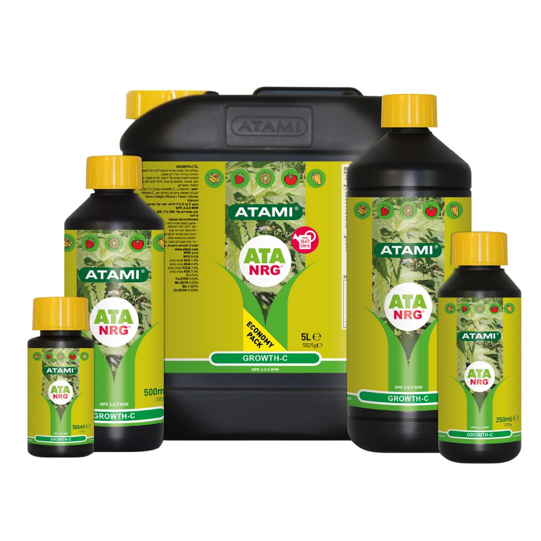 ATA NRG Growth C es 100% orgánico y ecológico,fomenta el crecimiento y un desarrollo del cultivo sano, verde y fuerte,ayuda a que la planta crezca con un tallo y ramas robustas y fuertes.