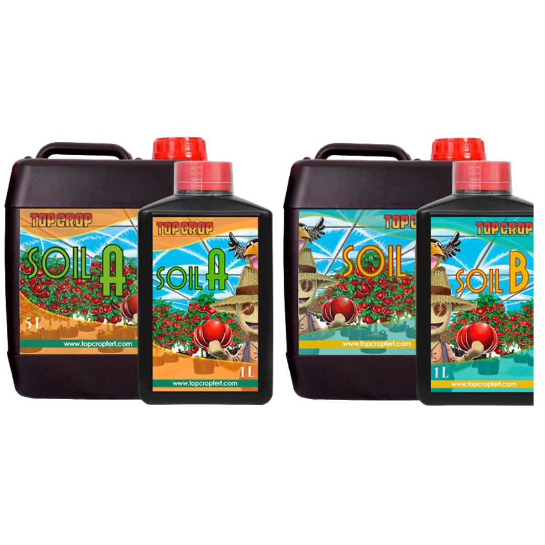 SOIL A + SOIL B de Topcrop es una fórmula líquida concentrada formulada eficazmente para preparar una solución nutritiva adecuada para la fertilización del suelo. Es un fertilizante equilibrado que contiene los nutrientes principales, auxiliares y micronutrientes necesarios para todo el ciclo de la planta.