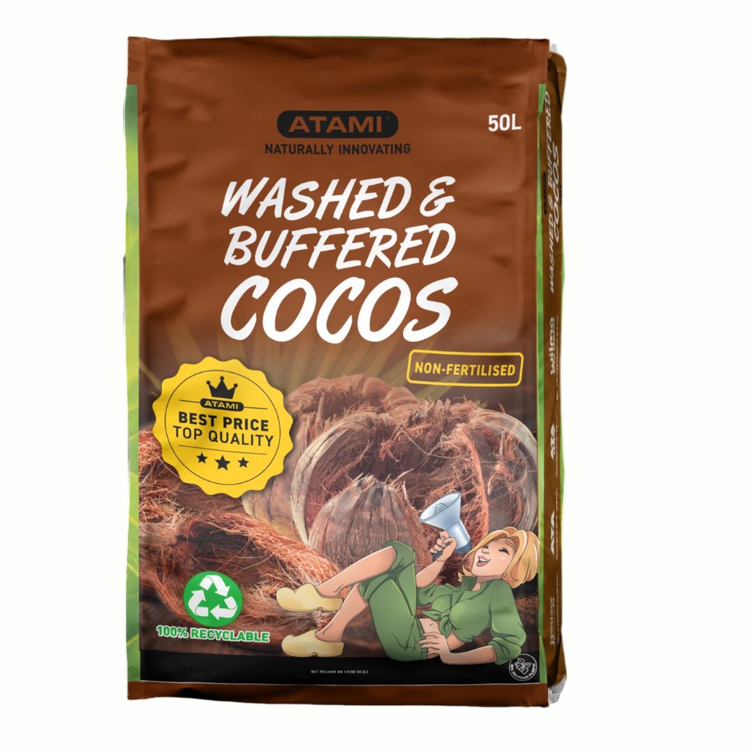 WASHED & BUFFERED COCOS es un sustrato de alta calidad compuesto al 100% por fibra de coco de Atami, previamente lavada y tamponada.